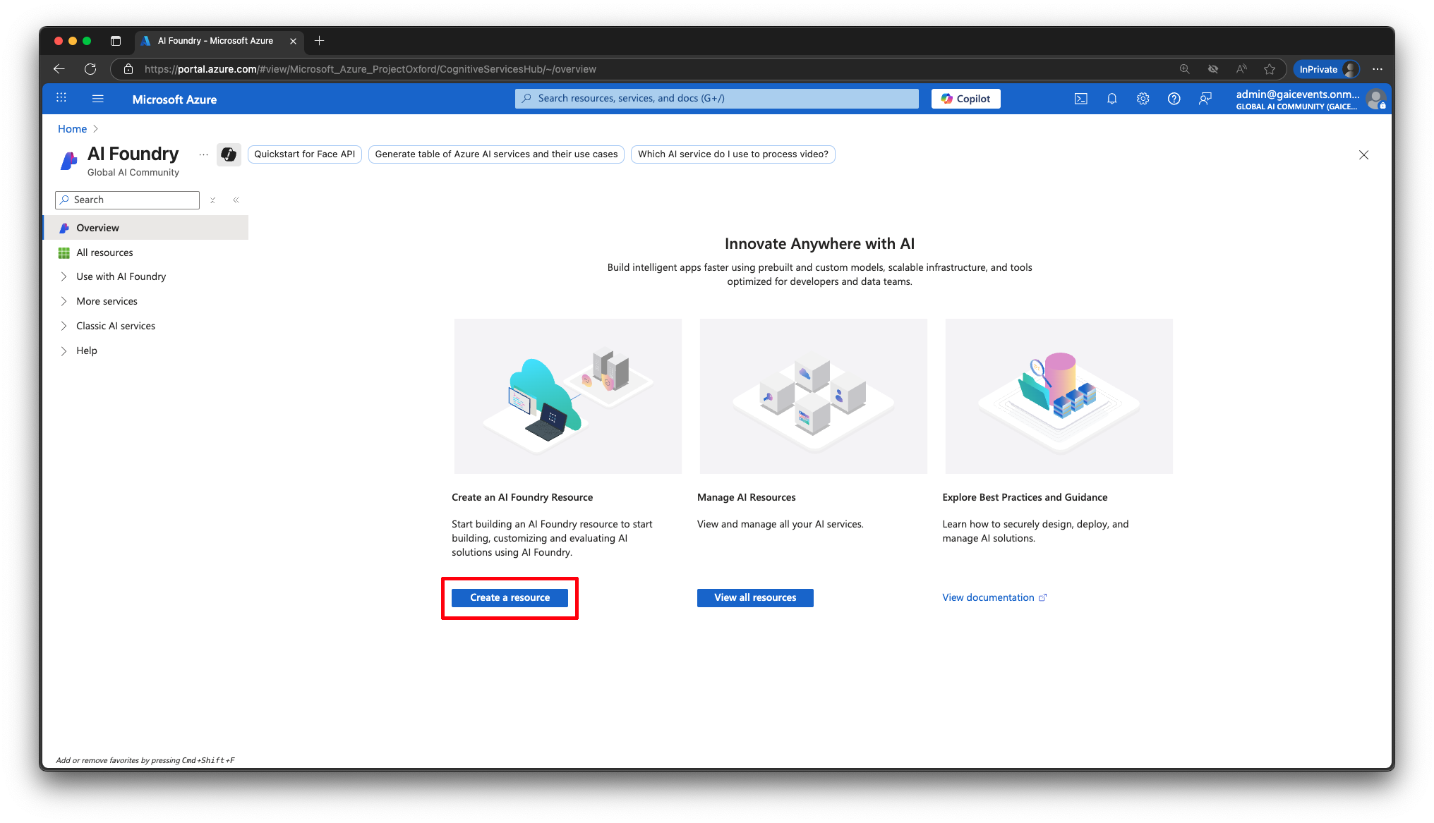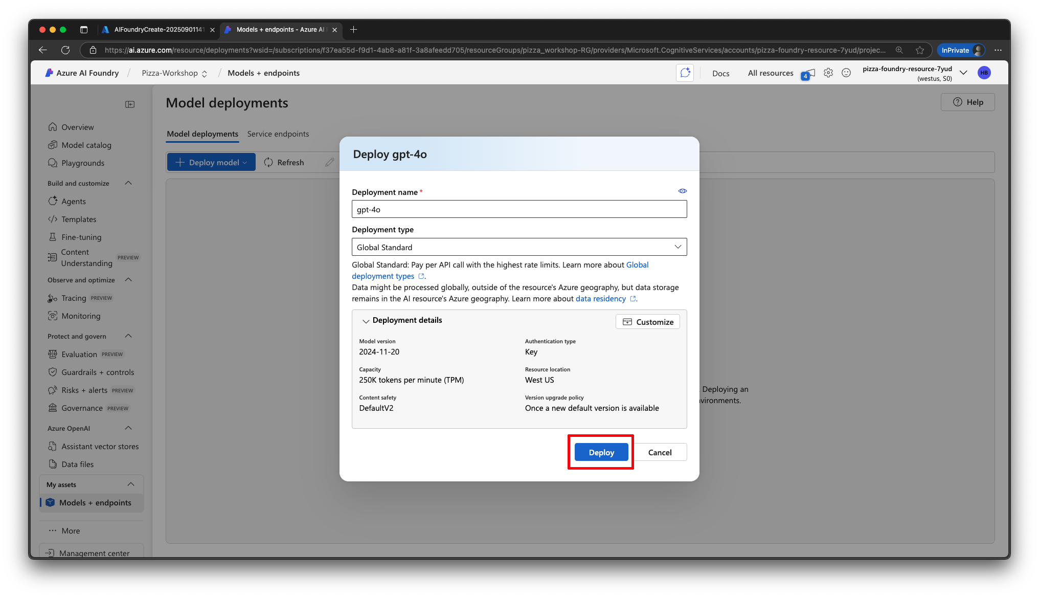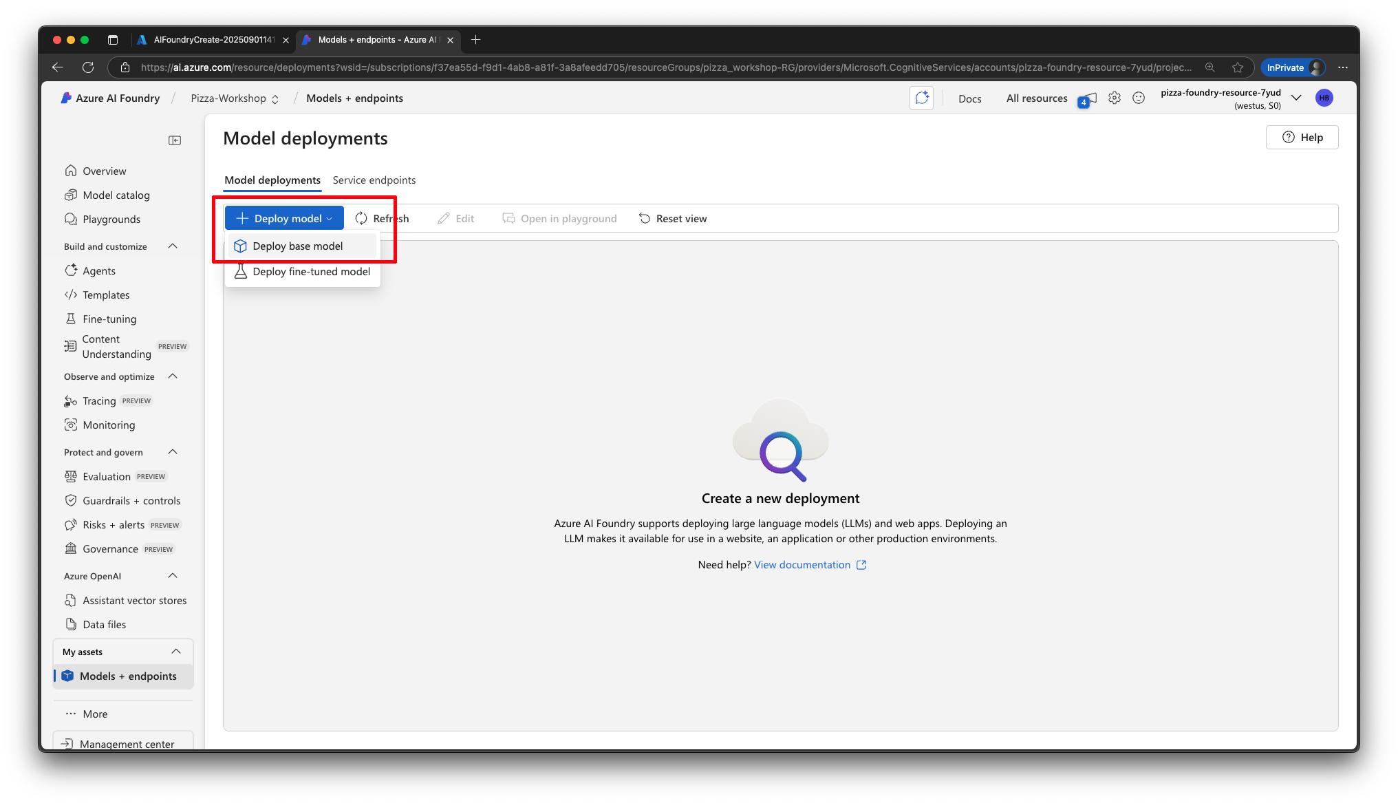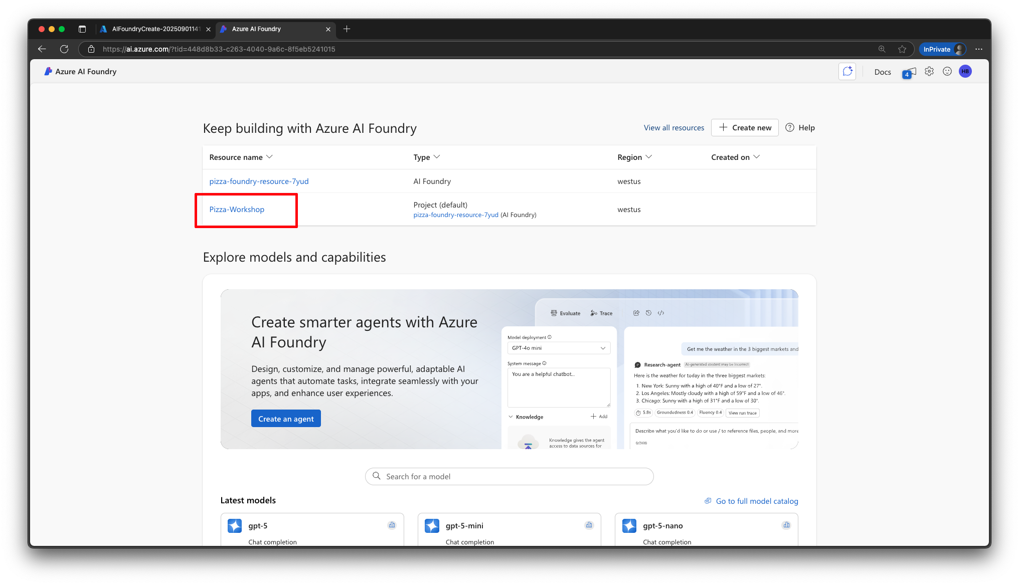 In this section, you will set up the Azure AI Foundry resource and deploy your first model so it’s ready for the workshop. Before you start with the workshop, make sure you have read how to get Azure and setup your dev environment.